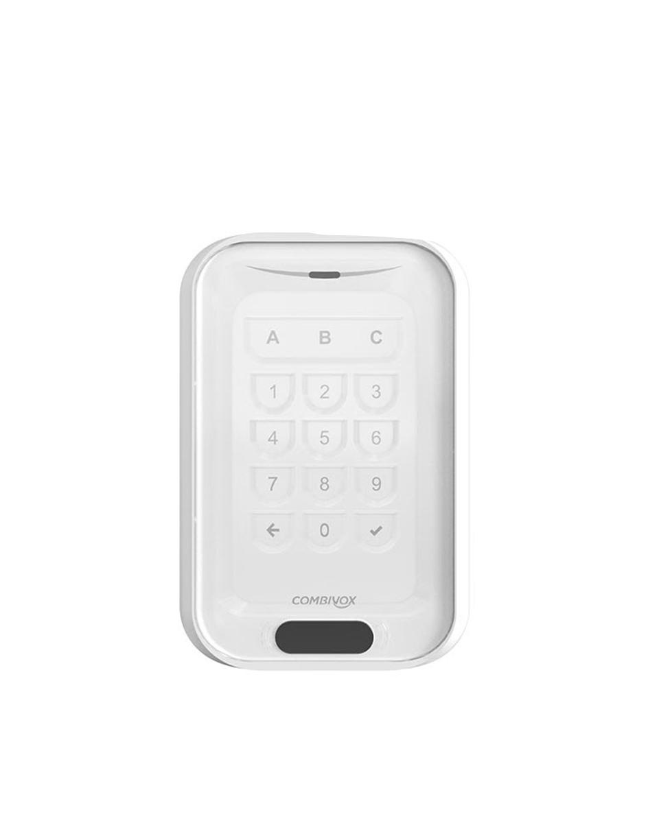 Tastiera di comando radio CTW bidirezionale multicanale nella banda 868 MHz per centrali di allarme Com- bivox predisposte. Alimentazione a batteria fornite in dotazione. Design elegante ed ergonomia dei tasti a sfioramento per un’esperienza di utilizzo piacevole e semplificata. Sensore ottico per accensione della tastiera. 4 tasti dedicati, liberamente configurabili, per la gestione delle funzioni di antifurto e domotica. Inserimento/disinserimento mediante codice numerico o chiave di prossimità, grazie al lettore trasponder in dotazione. Indicatore luminoso per segnalazione stato impianto e led tricolore dei tasti funzione per segnalazione avvenuta esecuzione dei comandi. Buzzer per indicazione acustica. Installazione anche in ambiente esterno, resistente alle intemperie (IK07-IP53). Dimensioni (L x H x P in mm): 110 X 160 X 28.BIANCO