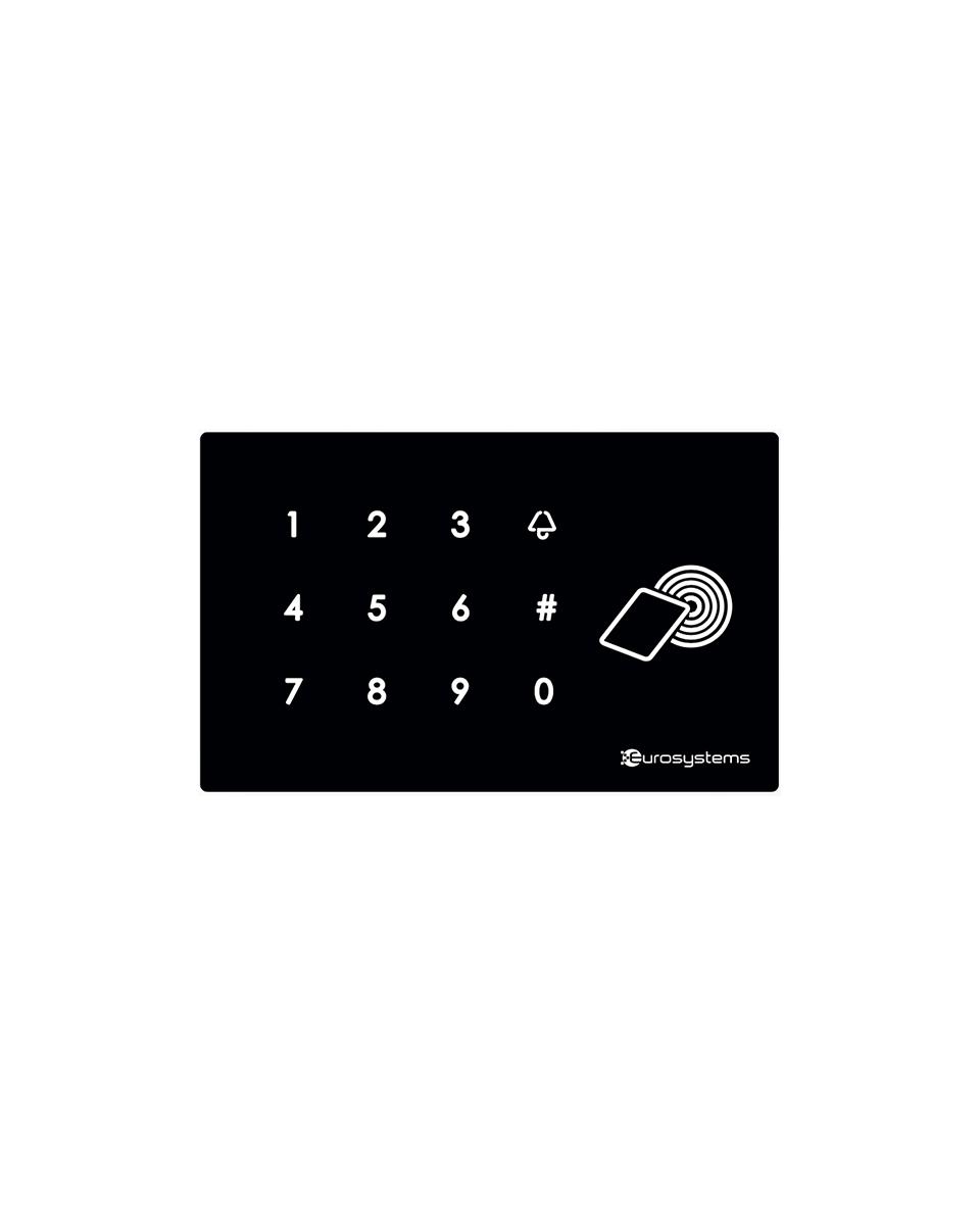 Tastiera numerica touch con lettore MIFARE 13.56Mhz per installazioni interne (IP20) a parete con interfaccia RS485 e protocollo MODBUS rtu. Colore nero e orientamento orizzontale. Prevede una uscita relè a bordo per comando serratura. Alimentazione 12Vdc. Dimensioni: (HxLxP) 120x75x16mm (montaggio a parete)