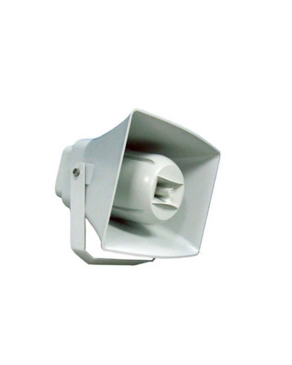 Tromba Hi-Fi a 2 vie, stagno in ABS - EN54-24:2008 Altoparlante: W: 6.5”. T: 1” Driver a compressione Potenza: 60/30/15/7.5W @ 100V. Risposta in frequenza: 200Hz - 20KHz (-10dB). SPL (1W/m): 102 dB. SPL MAX (Pmax @ 1m): 114 dB Angolo Copertura 1KHz/4KHz (-6dB): H: 110o / 80o. V: 90o / 80o. Colore Bianco (RAL 9010). Dimensioni (LxHxP): 418 x 332 x 391 mm Peso : 7.4 Kg. Staffa U inclusa. Grado di protezione: IP55. Certificazione EN54-24:2008