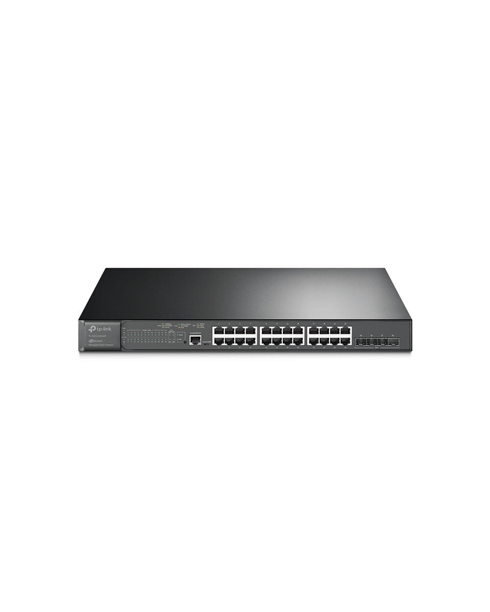 Omada Switch Managed L2+ con 24 Porte Gigabit PoE+ e 4 slot SFP+ 10GE 4× slot SFP+ 10Gbps 24× porte Gigabit 802.3af/at PoE+ Budget PoE totale fino a 384W (fino a 30W per porta)* Gestione centralizzata in cloud via web o con l'app Omada† Gestione standalone via web, CLI, SNMP, e RMON Static Routing per gestire il traffico interno con maggiore efficienza VLAN, ACL, QoS, IGMP Snooping, OAM, e DDM ERPS supporta una protezione rapida e il recupero in una ring topology Case in metallo di alta qualità e design rack-mountable