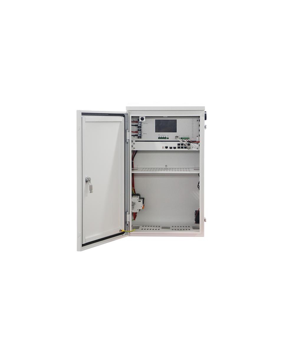 Alimentazione principale: Pannello solare. Batterie: Supporta batterie al Litio LiFePo4 24Vcc. Capacità di ricarica: Variabile in base al pannello solare utilizzato max 20A. Uscite alimentazione:3 uscite alimentazione a 12Vdc 1 uscita 24Vdc Assorbimento massimo 3A 1 Uscita 12V 5A per connessione NVR. Interfacce: RS485, prefigurata per stazione meteo BOS Smart controller: Verifica stato batteria, stato e controllo porte switch, temperatura interna, monitoraggio resa pannello fotovoltaico, invio allarmi eventi (es. batteria offline, voltaggio batteria, stato uscite alimentazione DC, stato switch, temperatura interna), impostazioni rete interna, impostazioni di rete per server di appoggio per software di gestione. Monitor: 5” LCD touch screen per controllo sistema, risoluzione 800x480 . Switch: Switch L2 8 porte PoE Porte 1-2: 10/100/1000 Base-T 90W PoE RJ45 (IEEE 802.3bt, IEEE8025.3af/at) Porte 3-8: 10/100/1000 Base-T 30W PoE RJ45 (IEEE802.3af/at) 2 porte SFP 10/100/1000Mbps. Router: Compatibile con BS-BB4GRUT.Allarme apertura porta: Supportato. Temperatura interna:Sonda temperatura interna Ventole di raffreddamento. Protezione: Interruttore magnetotermico 25A, Interruttore magnetotermico 25A Scaricatore di terra: Presente Corrente nominale 16A. Cassetto ottico: - . Ripiano: 1 x Ripiano per alloggiamento NVR Dimensioni max NVR (AxLxP): 50x320x211mm Dimensioni ripiano: 75(A) x 230(P)mm. Software:Software di monitoraggio remoto incluso, possibilità di visualizzare gli allarmi generati dai dispositivi collegati al software, localizzare geograficamente i dispositivi, aggiornamento software da remoto, importazione ed esportazione dei dati dei dispositivi, gestione temperatura, ventole, umidità, allarmi, batteria, porte switch ed apertura porta, creazione utenti manutentori, log di sistema, notifiche e-mail. Temperatura di lavoro: -20° +70°C. Dimensioni: 660x380x270mm. Ingombro massimo batteria: 270x260x240mm. Installazione:Compatibile con BS-SBA001WMA, BS-SBA001PMA. Materiale: Lamiera zincata verniciata a polveri